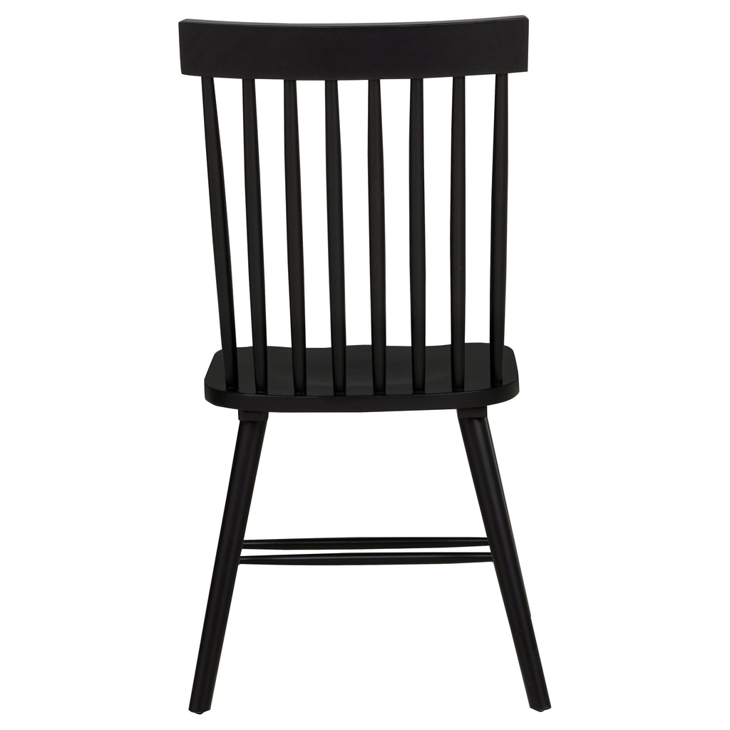 Classic and casual with a fresh farmhouse flair, this Windsor-style side chair features a high spindle back and gently contoured seat for timeless comfort. The clean silhouette is crafted from solid rubberwood with a rich wood veneer that enhances its natural grain. Angled legs with double stretchers offer reliable support and charm. Ideal for everyday dining, breakfast nooks, or cozy kitchen spaces. Key Features: • Windsor-style side chair in light ash finish offers timeless form with a farmhouse-inspired silhouette • Dining chair in light ash includes a tall spindle back and gently curved seat for classic comfort • Windsor backrest design promotes airy support and a traditional yet casual dining aesthetic • Contoured seat enhances comfort while angled legs provide a balanced and grounded profile • Double side stretchers deliver extra durability and everyday strength for long-term use • Crafted from solid rubberwood and finished in wood veneer for warmth, charm, and resilience