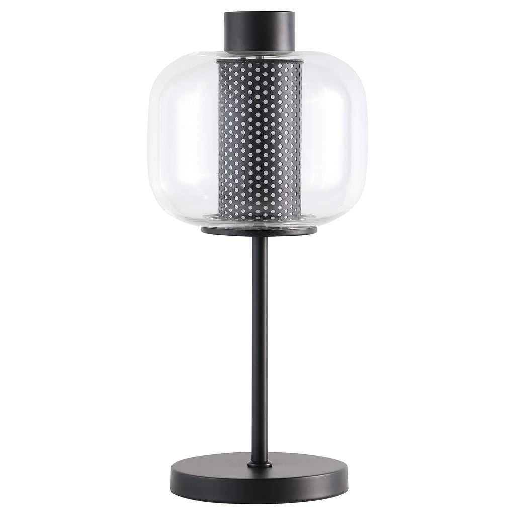 Steeped in vintage inspirations, this modern industrial table lamp is a charming choice for your nightstand or side table. Inside, a 9-watt LED bulb ensures energy efficiency and bright illumination. A metal mesh column in chic black creates depth and texture. It's surrounded with a clear glass shade that adds a chic layered effect. A simple round base and slim post complete the look. Key Features: • 9-watt LED bulb ensures energy efficiency and bright illumination • Metal mesh column in chic black creates depth and texture • Clear glass shade adds a chic layered effect • Simple round base and slim post complete the look • Vintage-inspired modern industrial design for nightstand or side table
