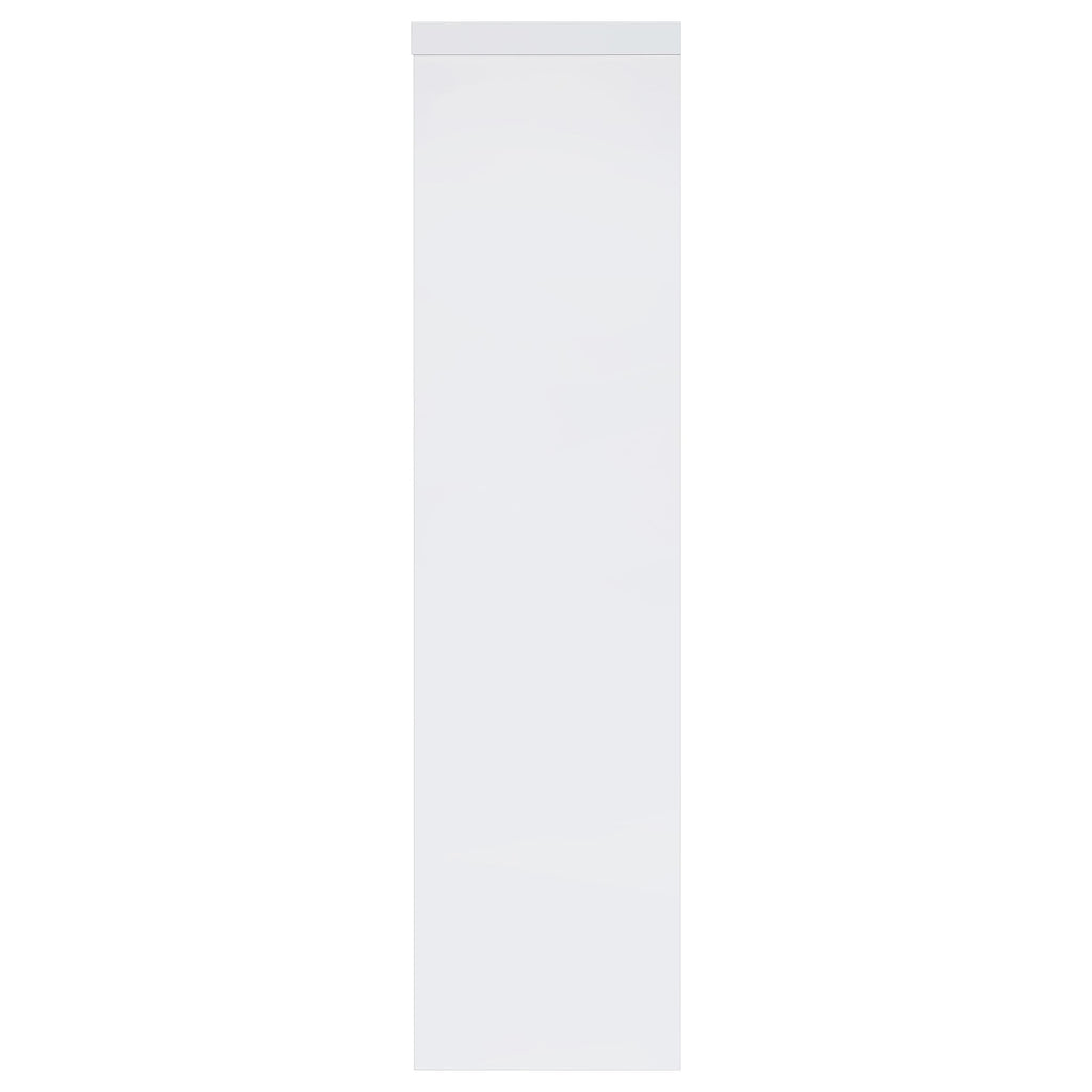 Extend a media console or add easy display space in a den or bedroom with this contemporary tower. Designed to accompany the matching media console, the tower adds a lower cabinet with shelving inside, and a pair of glass display shelves. It’s the perfect solution when both hidden and accessible storage are desired. A crisp white finish adds to the modern look and complements virtually any space. Melamine paper surfaces are designed for durability, perfect for everything from games and media to charming decor. Key Features: • Contemporary tower adds lower cabinet and glass display shelves • Crisp white finish complements any space • Melamine paper surfaces for durability • Perfect for hidden and accessible storage • Ideal for games, media, and decor