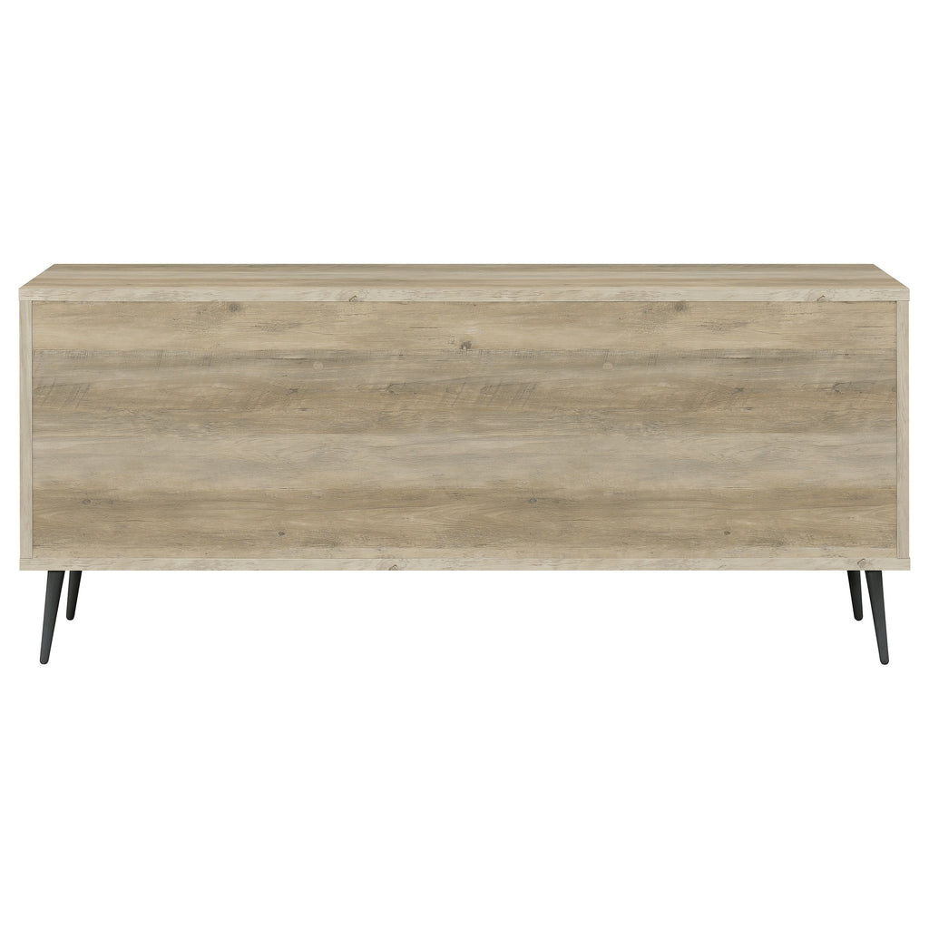 Light, airy energy and minimalist Scandi design combine to create a chic storage solution for any room. A modern accent cabinet features a pine wood finish case that's cool and neutral, perfect for a living or dining room. Door and drawer fronts add a contrasting antique gray finish that's rich and elegant, offering contrasting color and style for a stand-out look. Two doors open to reveal two shelves, great for everything from dinnerware to clothing and accessories. Three drawers create the perfect spot for smaller items, adding organization in an entry or home office. Key Features: • Light, airy energy and minimalist Scandi design for chic storage • Pine wood finish case with contrasting antique gray door and drawer fronts • Two doors open to reveal two shelves for dinnerware, clothing, and accessories • Three drawers for organizing smaller items in an entry or home office • Rich, elegant look perfect for living or dining room