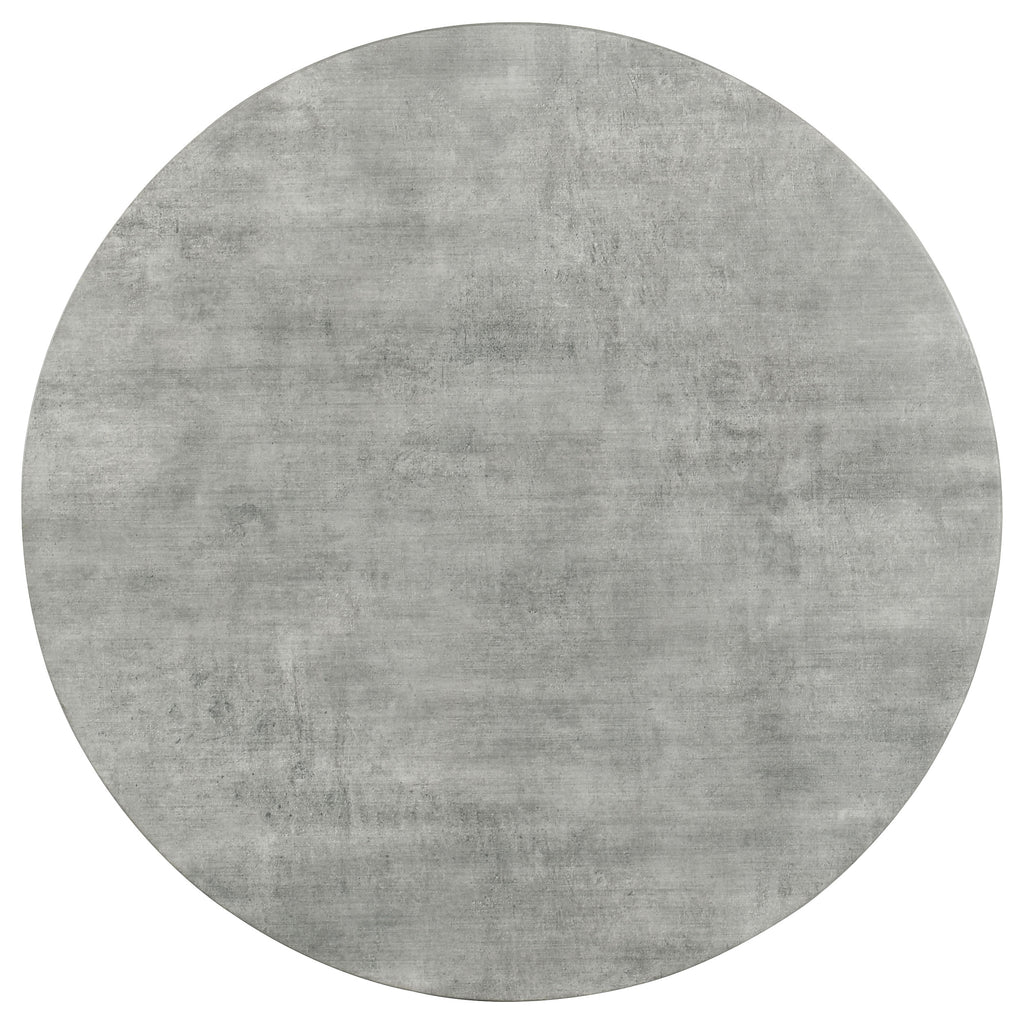 Elevate your modern industrial dining area with this retro-inspired round dining table. Designed with a high pressure laminate table top with a concrete-looking decoration paper, this dining table offers a raw, organic texture to the space. The spacious, round table top rests on a butterfly style iron base, lending a sleek and masculine feel. With a bold, gunmetal finish, it grounds the room and brings a dramatic dark tone. Place this wonderfully designed dining table in a dining room as an eye-catching statement piece. Key Features: • A sustainable table crafted from solid wood and recycled sawdust using a high pressured lamination process to create the table top and finished to have a realistic concrete top appearance • Table top is stain resistant, UV light resistant, weather resistant, abrasion and scratch resistant, cigarette burn resistant, shock resistant, and break proof • Table has durable powder coated gunmetal metal base • Butterfly style base brings a retro aesthetic • The spacious round table top seats four to six people