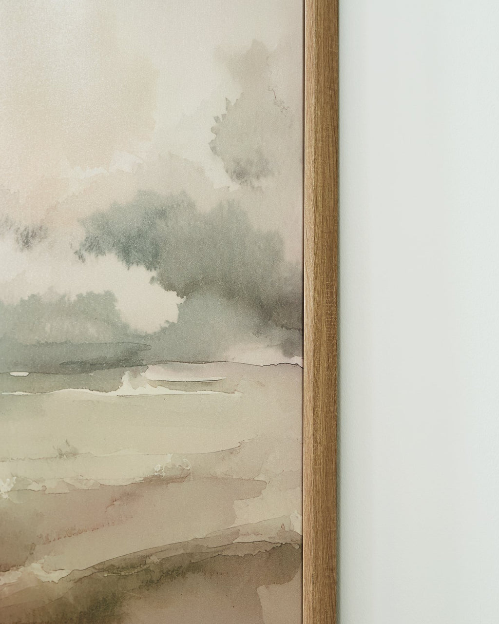 Coastal meets casual contemporary in this wall art, which transforms shades of blush, green and gray into a peaceful abstract waterscape. Framed and ready to hang, this printed canvas ushers a soothing seaside mood into your favorite space.